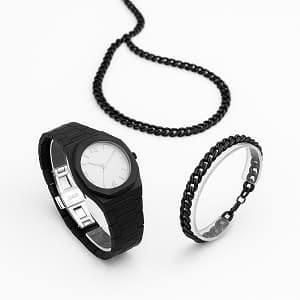 ست مردانه ساعت و دستبند و گردنبند solid black-مشکی